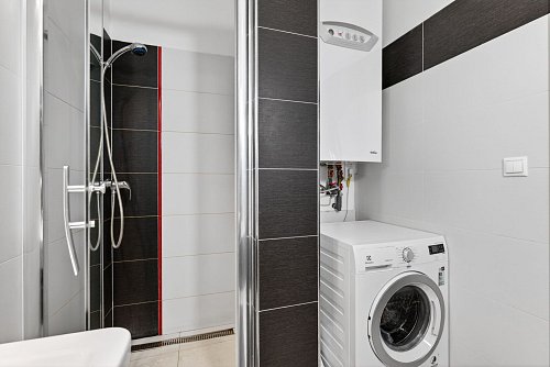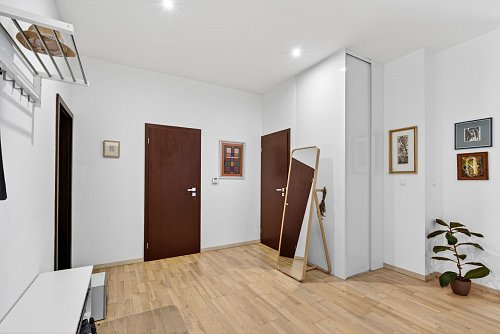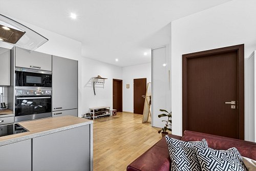 Obývačka prepojená s kuchyňou vytvára vzdušný priestor, kde budete chcieť tráviť čas – či už s rodinou, alebo pri pohári vína.Večer si vychutnáte ticho balkóna orientovaného do pokojnej časti.